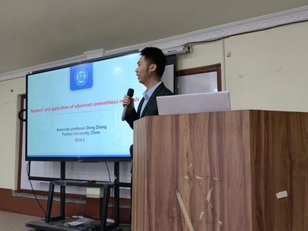 On February 28, the delegation revisited Tribhuvan University and conducted in-depth exchanges and inspections at the Department of Civil Engineering. They visited teaching facilities and specialized laboratories on site to learn about its teaching and research conditions as well as talent training models. Professor Yuan Huihui introduced the educational characteristics of the College of Civil Engineering, Fuzhou University, focusing on the master’s student training program for bilateral cooperation, and clarified the direction for joint training of high-level talents. Associate Professors Xue Junqing and Zhang Dong delivered academic presentations respectively, focusing on the cutting-edge fields of jointless bridges and advanced cementitious materials, and sharing the college’s research progress and application achievements.