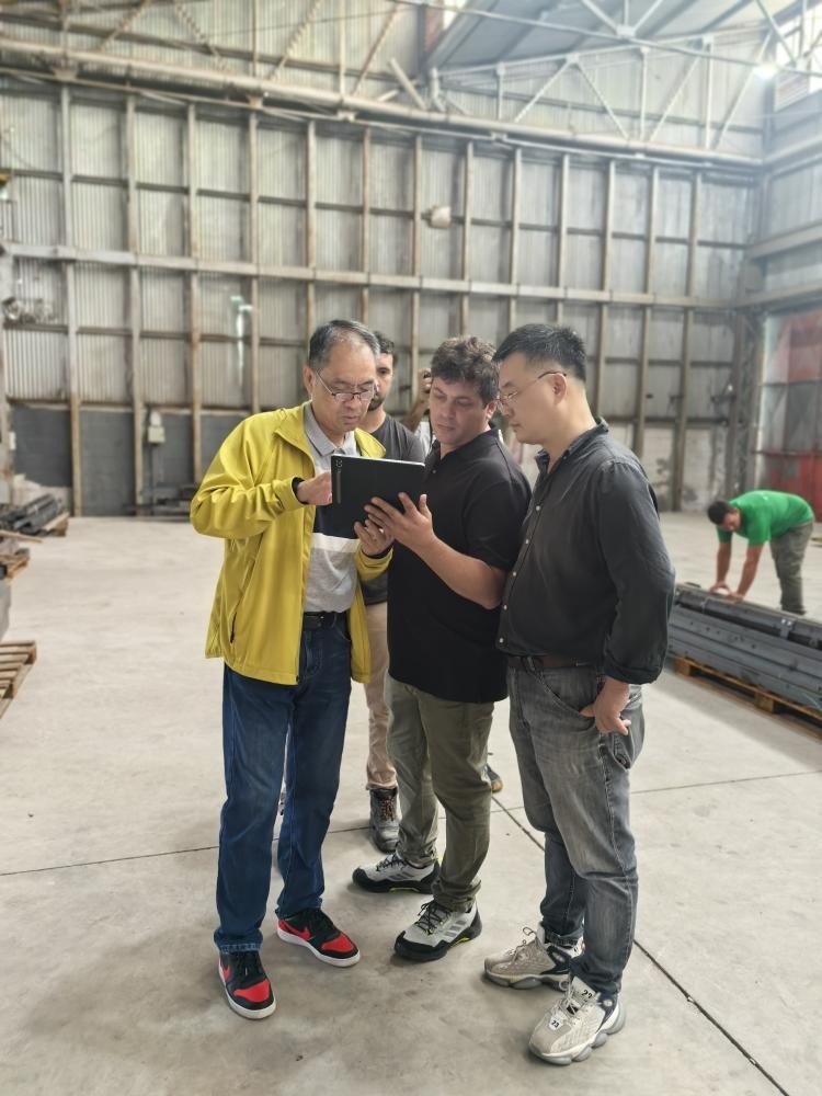 Precisely meeting industrial demands to ensure the implementation of overseas projects. On local time March 20th, immediately upon his arrival in Argentina, Professor Shen Weimin conducted business exchanges with local prefabricated construction enterprises. Previously, the prefabricated structural system and component production system, jointly led by Professor Shen Weimin and Professor Huang Jianzhuo, have already been applied to multiple real estate development projects in Argentina, with the supporting production equipment exported from China already shipped to the local area. During this visit, Professor Shen Weimin provided on-site assistance in equipment installation and commissioning. He held in-depth discussions with the enterprise on the entire process details including component production, cross-border transportation, and on-site construction, to solve practical technical challenges. These efforts ensured the steady progress of the projects and realized the localization and application of our College’s prefabricated construction technology in South America.